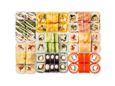 Роллы: Филадельфия с икрой лосося (имитация), Филадельфия много сыра, Филадельфия маки, Ясай, Классический с лососем, Классический с острым лососем, Классический с огурцом, Икура