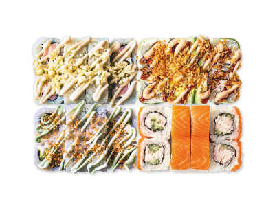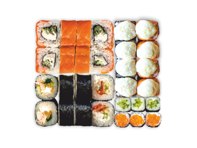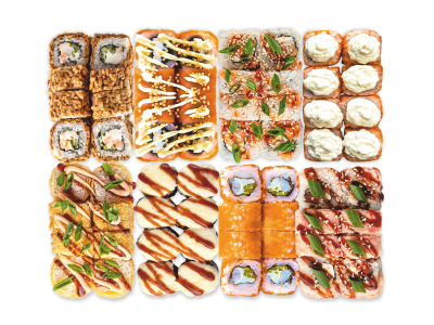 Роллы: лавина, филадельфия симпл, фохито с курицей, хоккайдо, техас, особый сурими, мексика с крабом, калифорния с омлетом, лава с креветкой