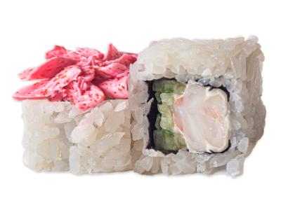 Креветка отварная, сливочный сыр, огурец, масаго, майонез, рис, нори