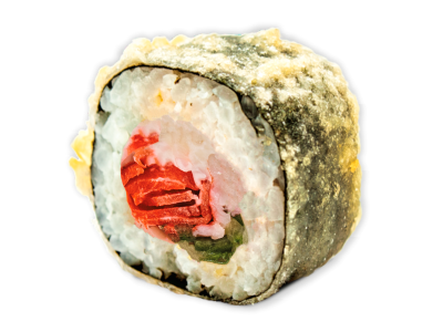 Лосось/форель, сливочный сыр, крабовое мясо имитация, майонез, соус "Унаги", огурец, томаты, рис, панировочные сухари, кляр