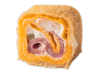 Сервелат, курица в/к, сливочный сыр, перец халапеньо, майонез, воздушный кляр с сухарями панировочными, тортилья сырная